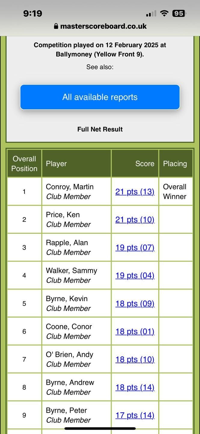 Here are the results for a well attended 9 hole comps on the weekend of 9 and 10 February as well as Wednesday 12 February 2025 Well done all who participated.
